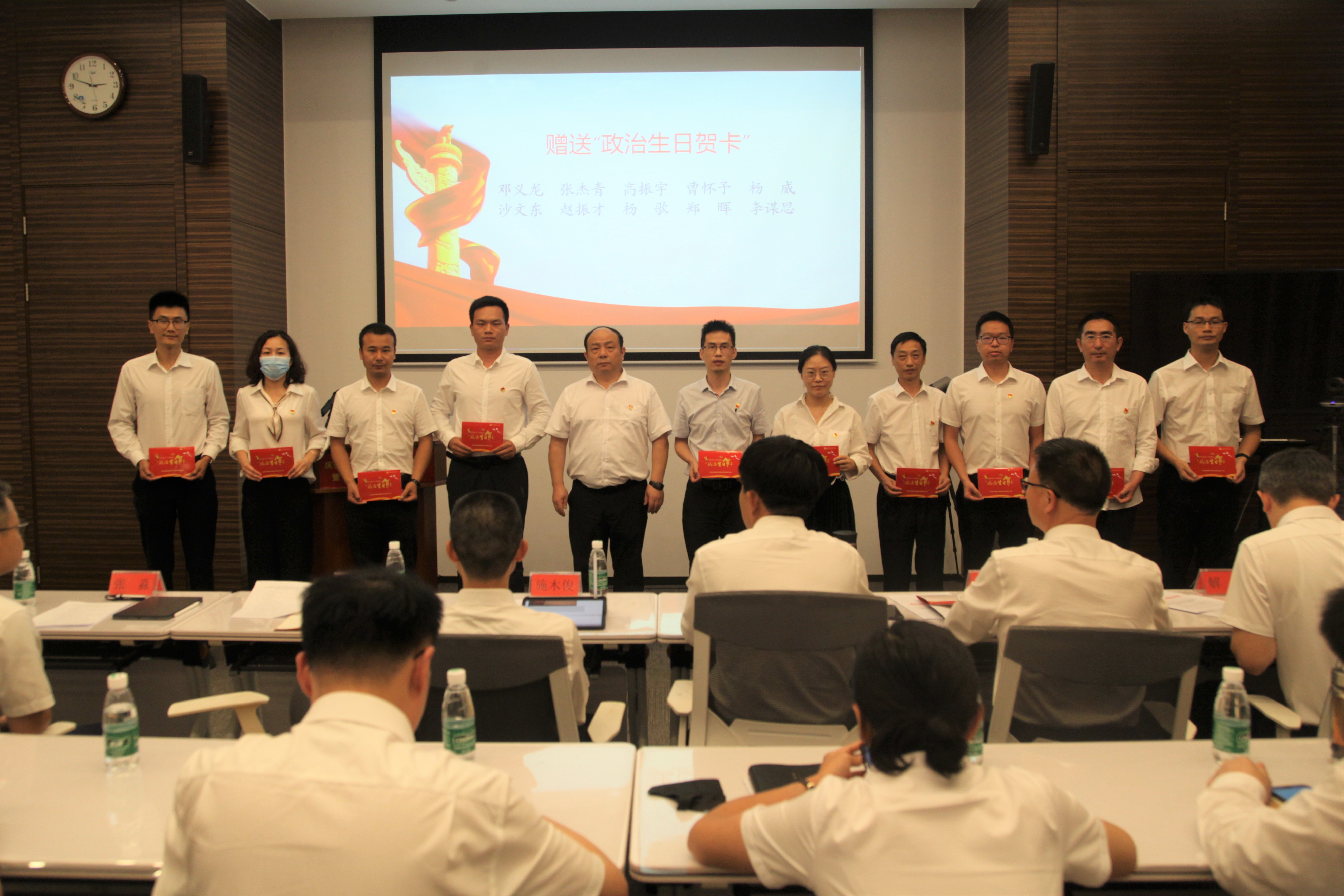 為讓黨員感受到來自組織的關(guān)懷和溫暖,激勵黨員以更加堅定的信念、更加高昂的斗志,全力以赴投入到公司生產(chǎn)經(jīng)營工作中去,會上,公司黨總支為7月份入黨的黨員過了一次集體政治生日,為黨員們贈送“政治生日賀卡”,并提出寄語和希望。