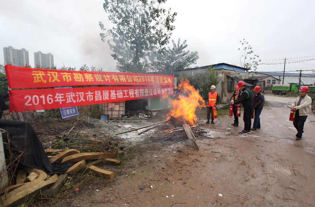 為了全面提高我公司員工的火災應急處理能力,增強消防意識,普及消防知識及消防技能, 在公司副總經理、總工官善友的部署下,2016年10月31日上午9點,勘察公司(及昌廈基礎公司)聯合武漢市測繪研究院,在我公司漢陽基地舉行了專門的的消防滅火演練。演練由市測繪研究院事務保障部張建輝書記任總指揮、勘察公司安全生產部孫衛林主任任副總指揮。張書記就企業存在的消防安全隱患及如何應對突發火災險情進行了深入淺出的講解,并繪聲繪色地演示了干粉滅火器的使用方法。參加演練的員工按著張書記的講解,在孫主任的帶領下井井有條地進行了模擬火場滅火。數次成功的滅火表明員工已經基本掌握了滅火器的使用方法。